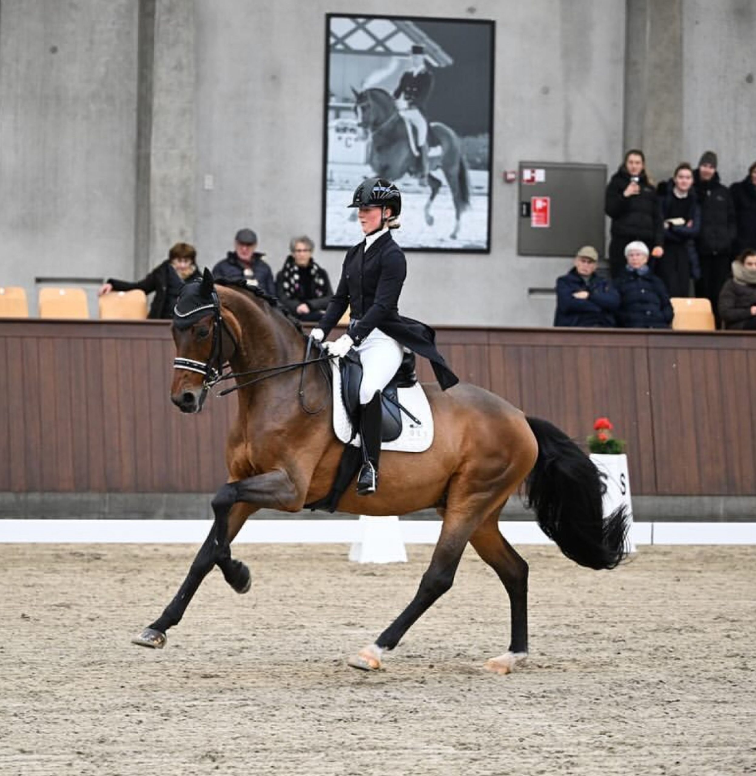 "Jeg har meget erfaring og mange super kompetente fagpersoner omkring mig hver dag, som guider og underviser mig. Udvikling er en kæmpe motivationsfaktor for mig. Hver dag brænder jeg for at dygtiggøre mig indenfor dressurens kunst og med mig på min rejse har jeg en garvet Grand Prix hest hvor vi tilsammen har startet op til Prix St. George, vundet MA, bronze til DM for beriderelever og andre fine placeringer. Jeg har en stor kærlighed til både heste, børn og ridesporten."